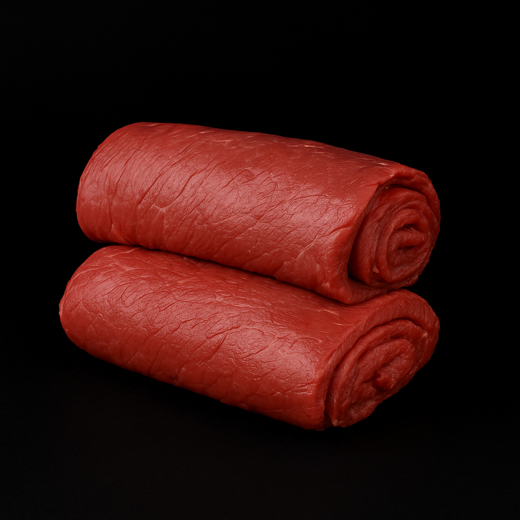 Die Rouladen vom Buša-Rind werden aus der Oberschale geschnitten, einem besonders mageren und feinfaserigen Teilstück aus der Keule. Diese Eigenschaften machen die Oberschale zur idealen Grundlage für Rinderrouladen und andere Schmorgerichte, bei denen das Fleisch langsam zart wird und Aromen optimal aufnimmt.